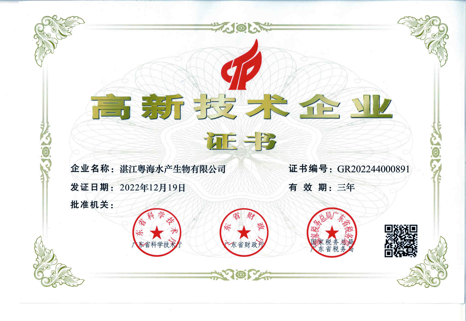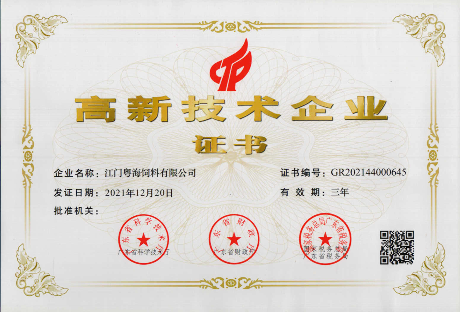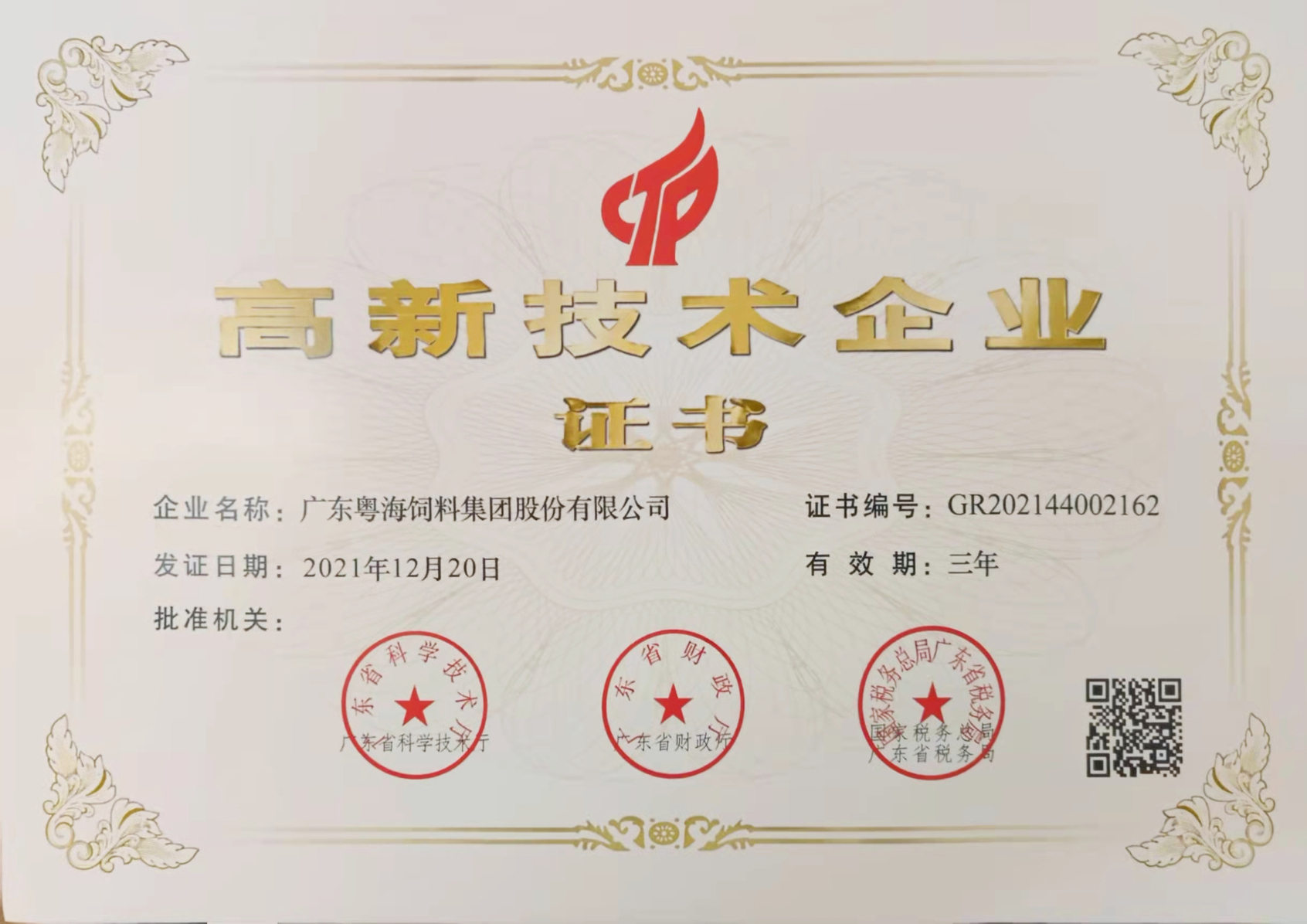 高新技术企业证书-广东九游官方端网站在线登入